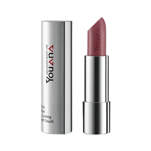 رژ لب جامد مات 102 YOUANA با رنگی ملایم و جلوه ای مات، انتخابی مناسب برای لب هایی جذاب و نرم است.